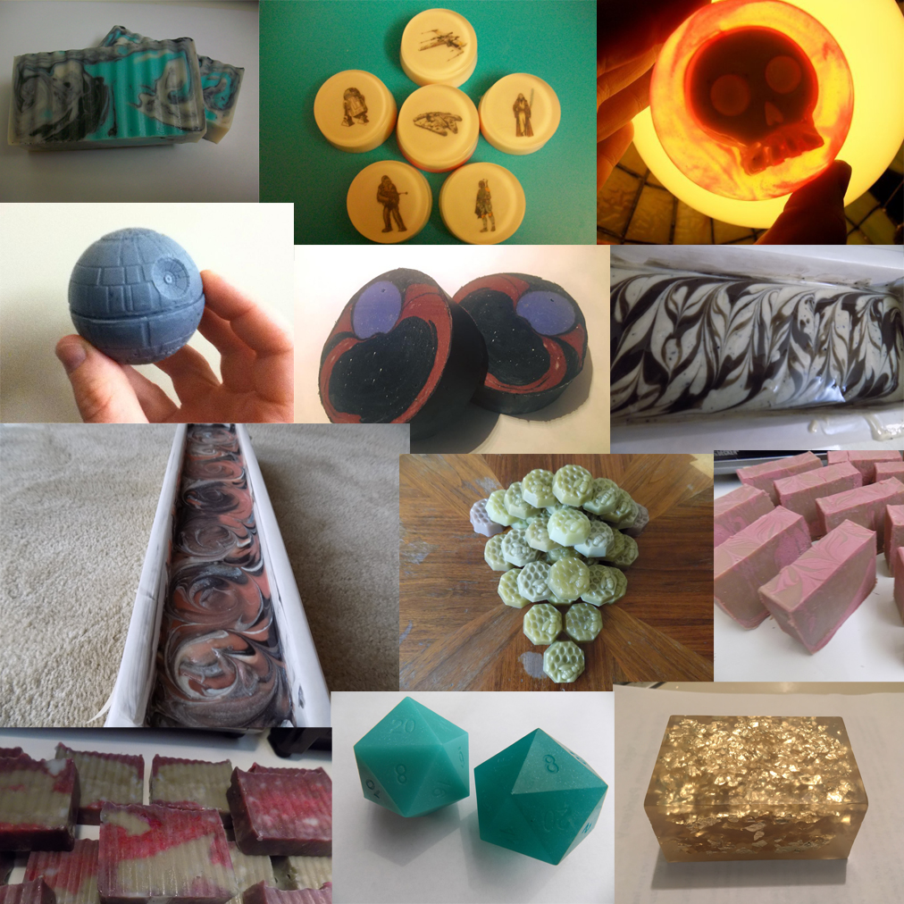 I’m sure you have a friend with an unusual hobby like carving egg shells, javelin catching, handcuff collecting. ex. I can also guess when I posed that question to you a name popped into your head. To almost everyone, I am that friend. Let’s not talk about all of my weird hobbies (I have a ton and I am not joking surely I will get into more in other blogs) instead lets focus on one, soap making. This hobby of mine puts me in a minority of a minority. Odds are you don’t know anyone that makes soap and if you do I am guessing it is not a dude. Having a hobby that is out of the norm is cool to me, almost along the same lines as loving a band others have not discovered. For years I have been making my own soap, now that I am thinking about it I have been making soap for over ten years, but I am getting off track (time to focus). If you are asking yourself why make soap? I have multiple reasons why. Instead of listing all of them off I will post a few. It’s fun, I always have a gift to give and it’s something everyone needs. I need to point out this is not normal soap. Most, if not all the soap you buy at a store nowadays more closely resembles laundry detergent then a real bar of soap (read the ingredients if you don’t believe me). With me being a geek and a guy I wanted to make soap I wanted. I would like to keep writing this blog but as I am looking at the clock I need to go to the radio station now to play radio DJ. You can see below some of the soaps I have made, talk to you soon.