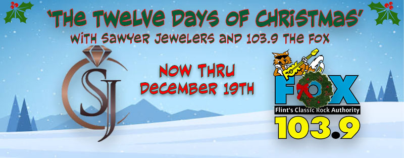 It’s The 12 Days of Christmas, presented by Sawyer Jewelers and 103.9 the FOX! It all happens daily, Monday, December 8th through Friday, December 19th, 2025.