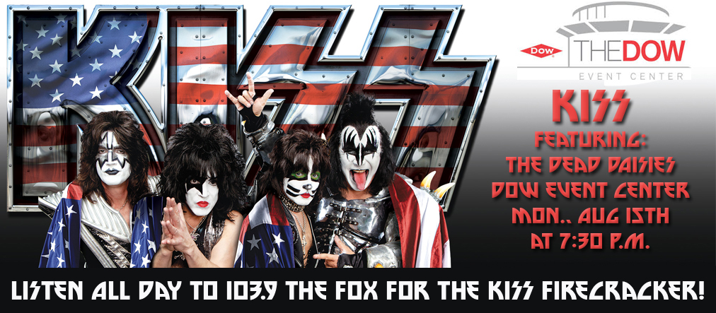 Listen ALL DAY to 103.9 The Fox for The KISS Firecracker! When you hear it, call 810-230-WRSR. The 9th caller will instantly win tickets to see KISS at The DOW Events Center August 15th at 7:30pm.
